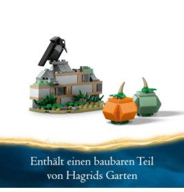 Das Set beinhaltet zusätzlich einen kleinen, baubaren Ausschnitt von Hagrids Garten mit zwei Kürbissen und einem Vogel. Diese liebevollen Details ergänzen den Hippogreif perfekt und laden zu phantasievollen Geschichten ein. Stelle klassische Szenen nach oder erfinde deine eigenen magischen Abenteuer in der Welt der Hexen und Zauberer.