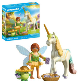 Lerne das PLAYMOBIL Einhorn Regenbogenblume und ihre bezaubernde Feen-Freundin kennen! Regenbogenblume ist für ihre besondere Verbindung zum Regenbogen bekannt – ihre schillernde Präsenz bringt Farbe und Hoffnung ins Einhorn-Königreich. Die bezaubernde Fee wird von ihrem niedlichen Begleiter, dem Joyling, unterstützt, der mit viel Freude und Hingabe bei der Pflege des Einhorns hilft.